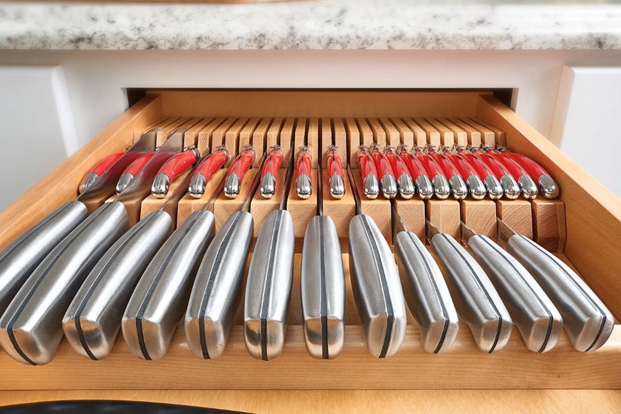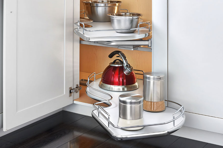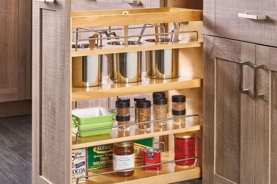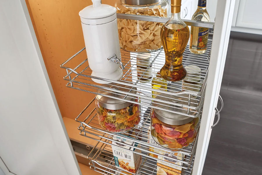 - Storage systems: Pull-outs, drawer organizers, pantry kits, and utensil dividers from Rev-A-Shelf.
